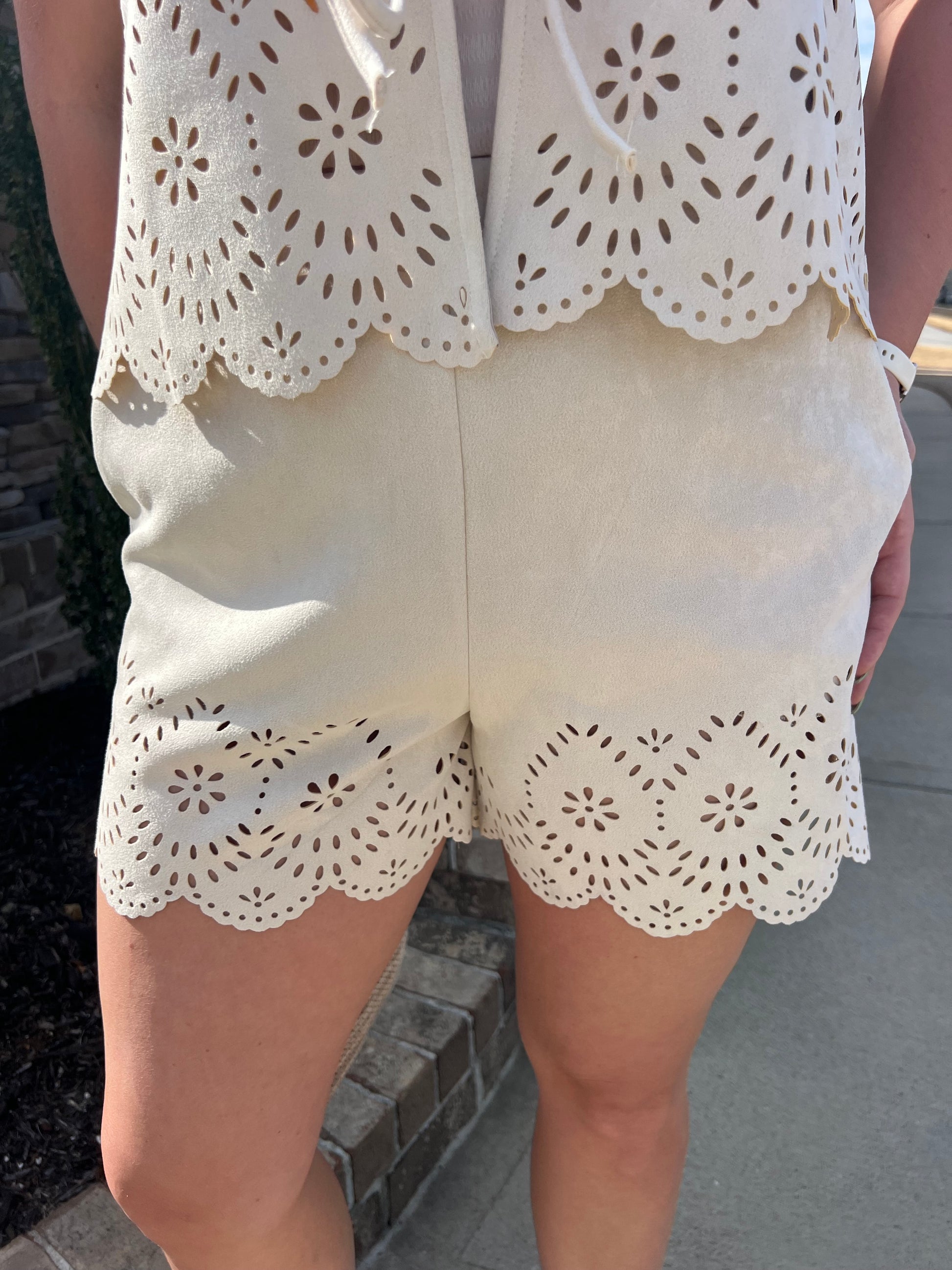 Laurel Soft Suede Laser Cut Vest and Short Set